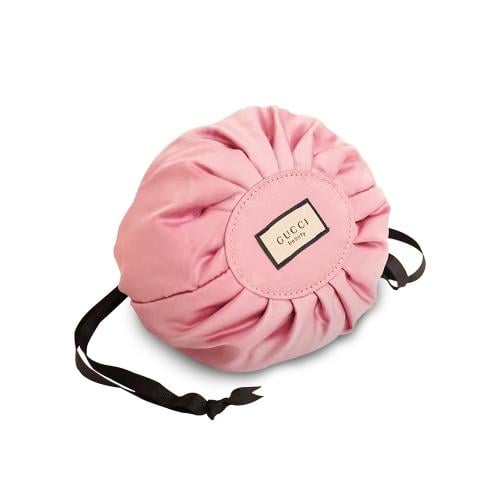 حقيبة مستحضرات التجميل الجديدة من GUCCI Beauty Makeup ذات الرباط الوردي وبطانة من الزهور