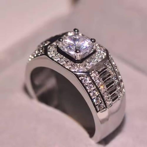 خاتم رجالي استثنائي يجمع بين الفخامة والرقي، مصنوع بدقة عالية من الفضة الخالصة 925 ومرصع بألماس فاخر يمنحك حضورًا مميزًا وبريقًا لا يقاوم.