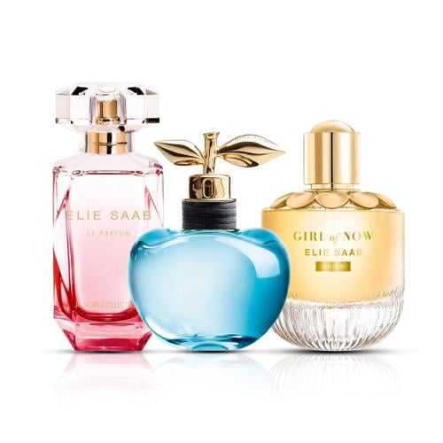 هذه المجموعه تحتوي علي :إيلي صعب جيرل أوف ناو شاين -90ملايلي صعب ريزورت كولكشن اصدار محدود-50ملنينا ريتشي لونا -50مل